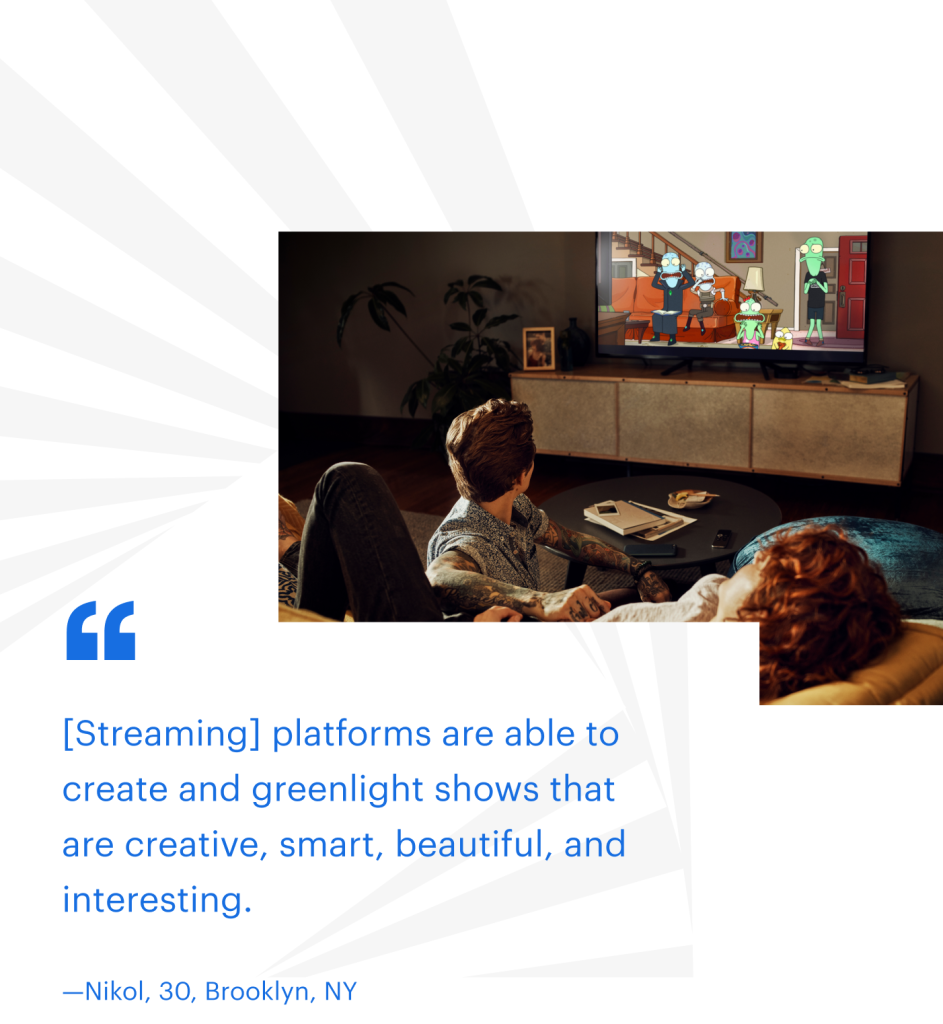 Streaming is a self-exploration process for Gen Zs who use content to help define who they are and what they stand for. Zs see themselves in the complexities of characters’ identities, push for cultural connectedness, and seek content that deepens their niche interests.